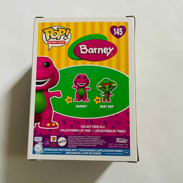 Barney is excited to make some new friends in your Barney Funko Pop! collection! Give this dinosaur a warm welcome when you add him to your Retro Toys set. This Barney Funko Pop Vinyl Figure #145 measures approximately 4-inches tall and comes packaged in a window display box. For ages 3 and up.
