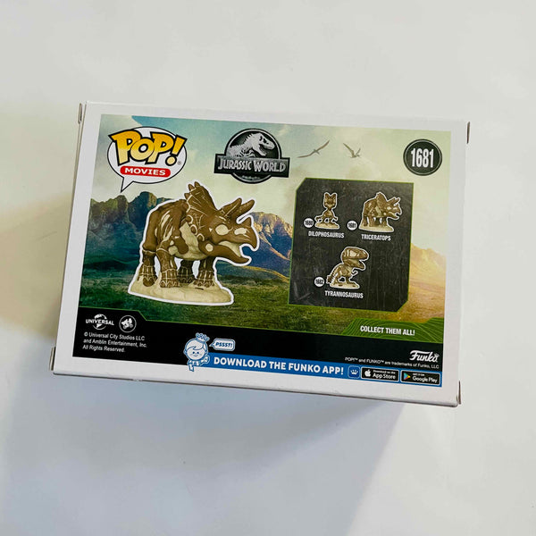 Let your Funko Pop! collection grow and evolve by preserving this fossilized Triceratops in your personal exhibit. Dig up this prehistoric specimen to complete your Jurassic Park set. This Jurassic Park Fossil Triceratops Funko Pop! Vinyl Figure #1681 measures approximately 3 3/4-inches tall and comes packaged in a window display box. For ages 3 and up.