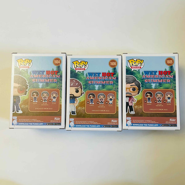 ThisFunko POP! Movies Wet Hot American Summer Set of 3 includes 3 Funko Pop! Vinyl Figures. Each figure in this assortment measures approximately 3 3/4-inches tall and comes packaged in a window display box. Each figure is in mint / near mint condition and will be shipped double boxed.