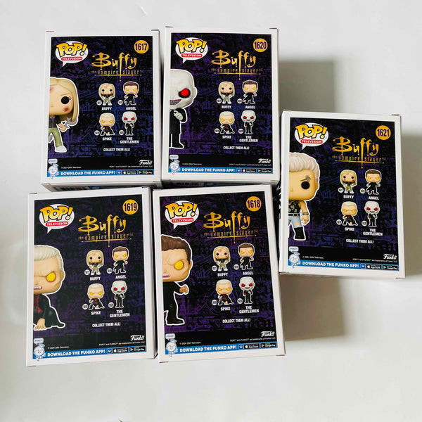 This Funko POP! Television Funko POP! Television Buffy the Vampire Slayer Set of 4 + exclusive spike includes 5 Funko Pop! Vinyl Figures. Each figure in this assortment measures approximately 3 3/4-inches tall and comes packaged in a window display box. Each figure is in mint / near mint condition and will be shipped double boxed.