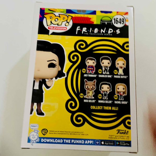 Push the boundaries of the culinary world with Monica Geller as she whips up new recipes using Mockolate, seen in the Friends comedy series! Help her endorse this synthetic chocolate by sampling her creations in your Funko Pop! collection! This Friends Monica Geller Mockolate Funko Pop! Vinyl Figure #1649 measures approximately 4-inches tall and comes packaged in a window display box. For ages 3 and up.