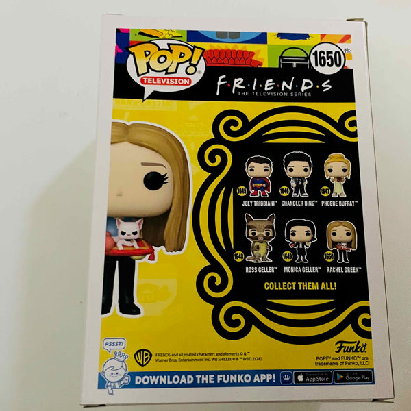 Rachel Green is eager to introduce her friends to her new cat, Mrs. Whiskerson, seen in the Friends comedy series! Claw out some room in your Funko Pop! collection for Rachel and her feline companion! This Friends Rachel Green with Cat Funko Pop! Vinyl Figure #1650 measures approximately 4-inches tall and comes packaged in a window display box. For ages 3 and up.