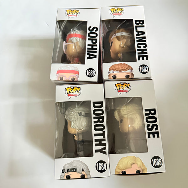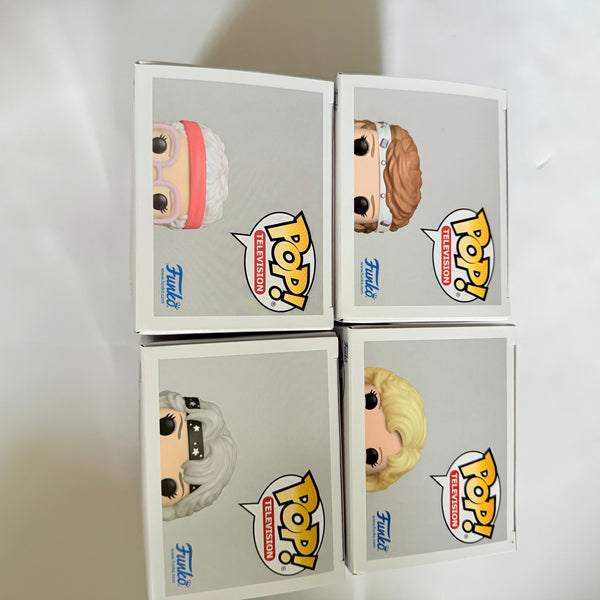 Funko Pop! TV : The Golden Girls 40th Set of 4 includes 4 Funko Pop! Vinyl Figures. Each figure in this assortment measures approximately 3 3/4-inches tall and comes packaged in a window display box. Each figure is in mint / near mint condition and will be shipped double boxed.