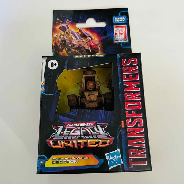 This Infernac Universe Geocron Transformers figure comes with rock blade accessory. Accessory attaches in both modes. Unite your favorite characters from across the world of Transformers robots into your collection with the Transformers Legacy United Core Class Infernac Universe Geocron action figure! This 3 1/2-inch Infernac Universe Geocron action figure is an Armorizer, a creature made from living rocks and minerals on other planets! Combine this Armorizer toy with other Transformers figures to create cool rock armor and weapons. Figure also converts between rock creature and motorcycle modes in 10 steps. Gear up for battle with the included rock blade accessory. Celebrate the last 40 years of Transformers history with Transformers Legacy action figures. Transformers Legacy opens the portal to a whole new universe of -- More Than Meets the Eye -- bringing together every Transformers generation like you’ve never seen before. Collect and combine different characters to create your ideal Legacy lineup. Ages 8 and up.
