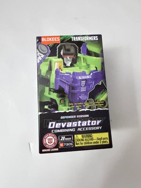 The highly anticipated Blokees Transformers Defender Version Devastator Combining Accessory Model Kit makes its way into your collection! Build Devastator by combining other kits from Defenders Versions 01, 02, and 03 (sold separately). The base Devastator Accessory Model Kit includes a head, cannon, torso, arms, upper leg, and alternate face plate. The model kit also comes with a Devastator art card. Packaged in a closed single box. For ages 8 and up.