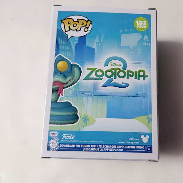 This Zootopia 2 Gary De'Snake Funko Pop! Vinyl Figure #1655 measures approximately 3 3/4-inches tall and comes packaged in a window display box. Ages 3 and up.