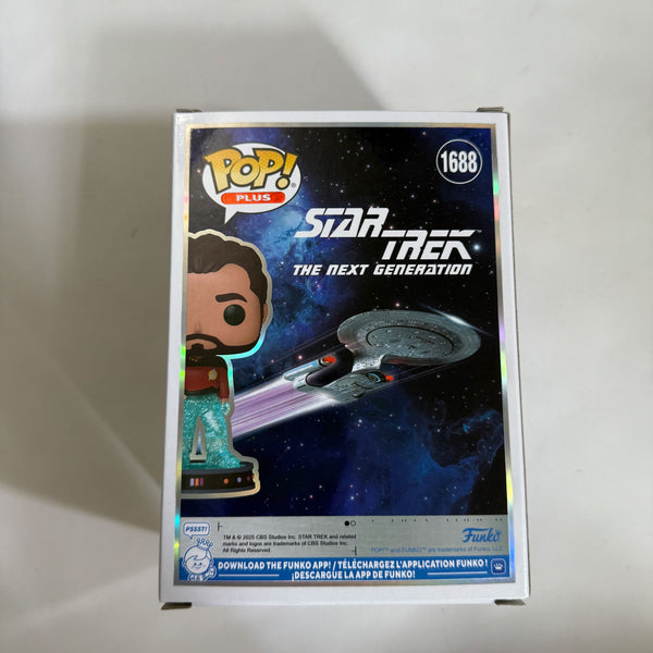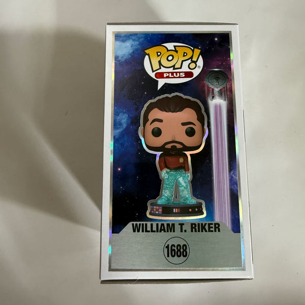 Prepare to energize! Join William T. Riker atop the transporter platform as he is beamed to a new, uncharted world! Featuring a dazzling glitter deco, this collectible seemingly dematerializes right before your eyes. Complete your crew when you welcome this iconic leader to the bridge in your Star Trek Funko Pop! collection! This Star Trek Transporter William T. Riker Glitter Funko Pop! Vinyl Figure Plus #1688 measures approximately 4 1/2-inches tall and comes packaged in a window display box. For ages 3 and up.