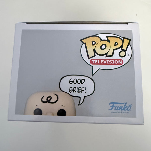 This Peanuts Charlie Brown Good Grief Funko Pop Vinyl Figure #1677 measures approximately 3 3/4-inches tall. Comes packaged in a window display box. For ages 3 and up.