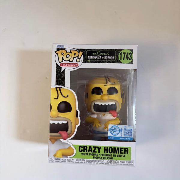 Bring home some Springfield fun with Crazy Homer! Gather the Simpson family around the television when you welcome Crazy Homer to your The Simpsons: Treehouse of Horror Funko Pop! collection! The Simpsons: Treehouse of Horror Crazy Homer Funko Pop! Vinyl Figure #1743 - Specialty Series measures approximately 4 1/4-inches tall and comes packaged in a window display box. For ages 3 and up.