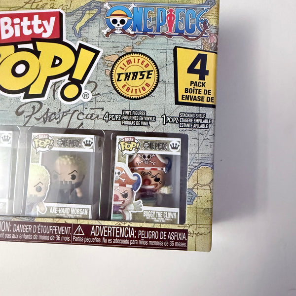 This One Piece Luffy Funko Bitty Pop! Mini-Figure 4-Pack includes:Monkey D Luffy, Roronoa Zoro, Axe-Hand Morgan and Buggy The Clown (1/6)