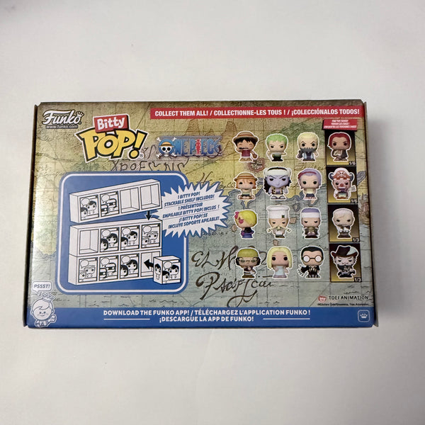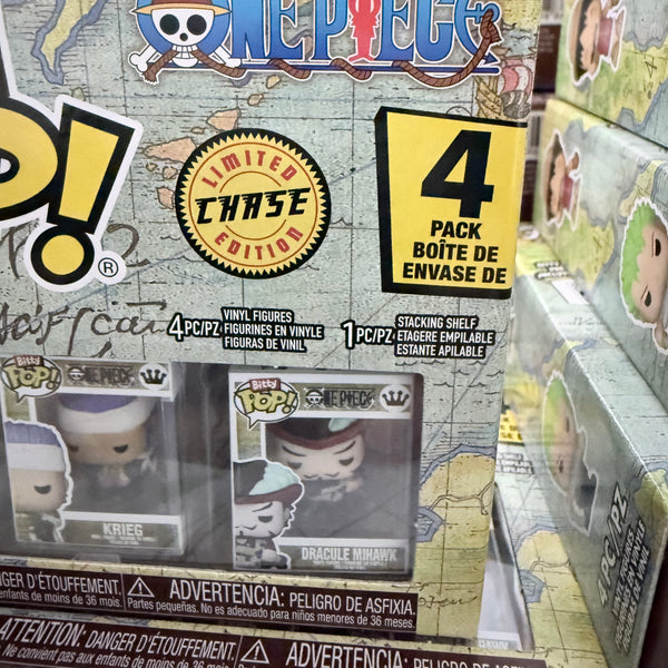 This One Piece Sanji Funko Bitty Pop! Mini-Figure 4-Pack includes:Sanji, Zeff, Krieg and Dracule Mihawk (1/3)