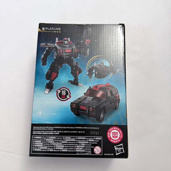 Experience the epic universe of Transformers robots with the Transformers Flatline toy! The 7-inch (17.5 cm) figure converts from robot action figure to offroad vehicle in 16 steps. With intricate poseability and attachable accessories like hand missiles and a cannon, this Flatline action figure makes an awesome addition to any collection. Look for more Transformers collectible toys (sold separately, subject to availability) featuring favorite characters like Optimus Prime, Bumblebee, Megatron, and more to create a lineup that is — More Than Meets the Eye. Ages 8 and up.